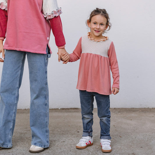 Nuestros diseños se destacan por combinaciones únicas de texturas, colores y formas que invitan a las niñas a disfrutar de lo que visten con alegría, celebrando su individualidad y reflejando su propio estilo.