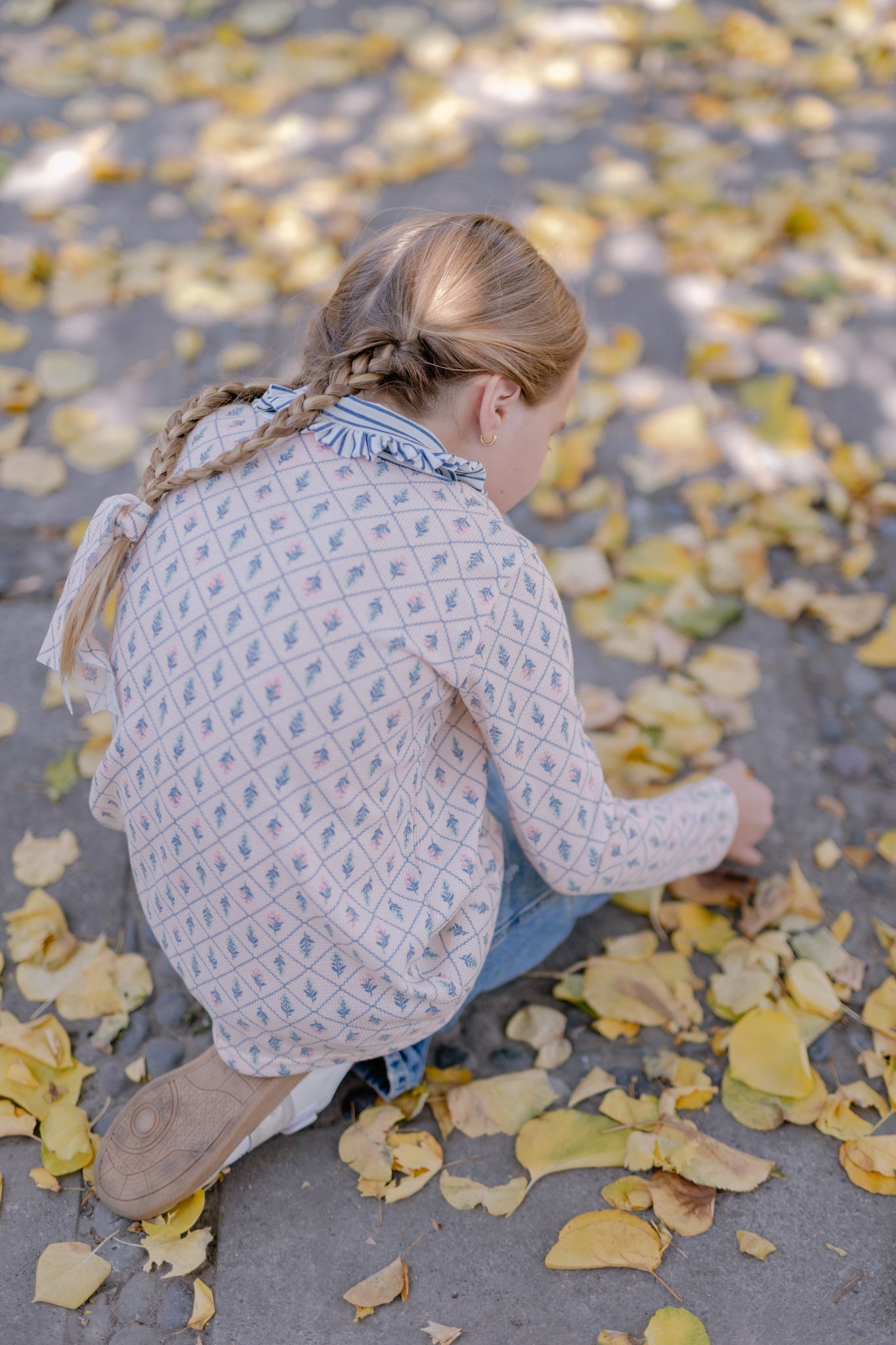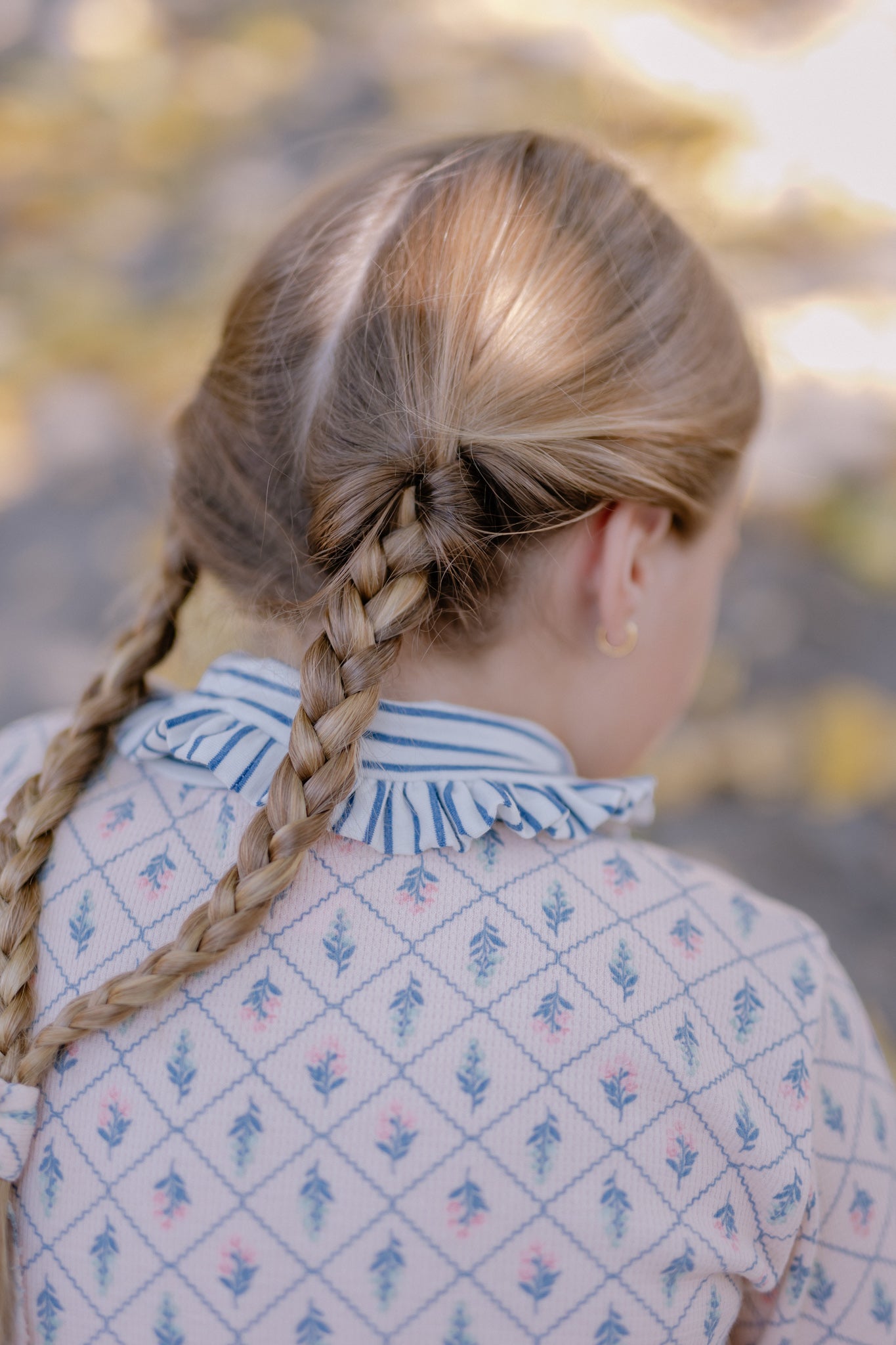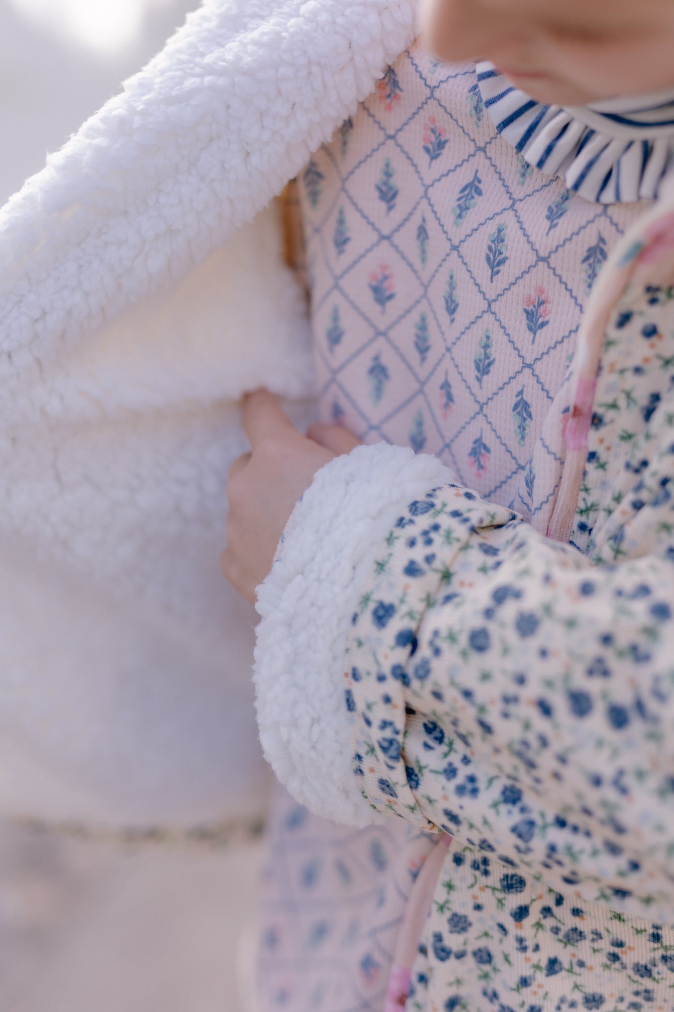 Beatle texturado rosa pálido estampado, con cuellito bajo de vuelito listado azul y blanco que no aprieta, cómodo y suave al usar. Perfecto para combinar con todo tipo de prendas y crear looks versátiles para cualquier ocasión.