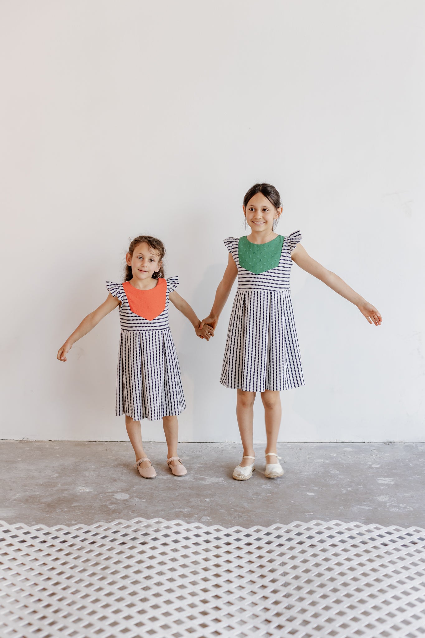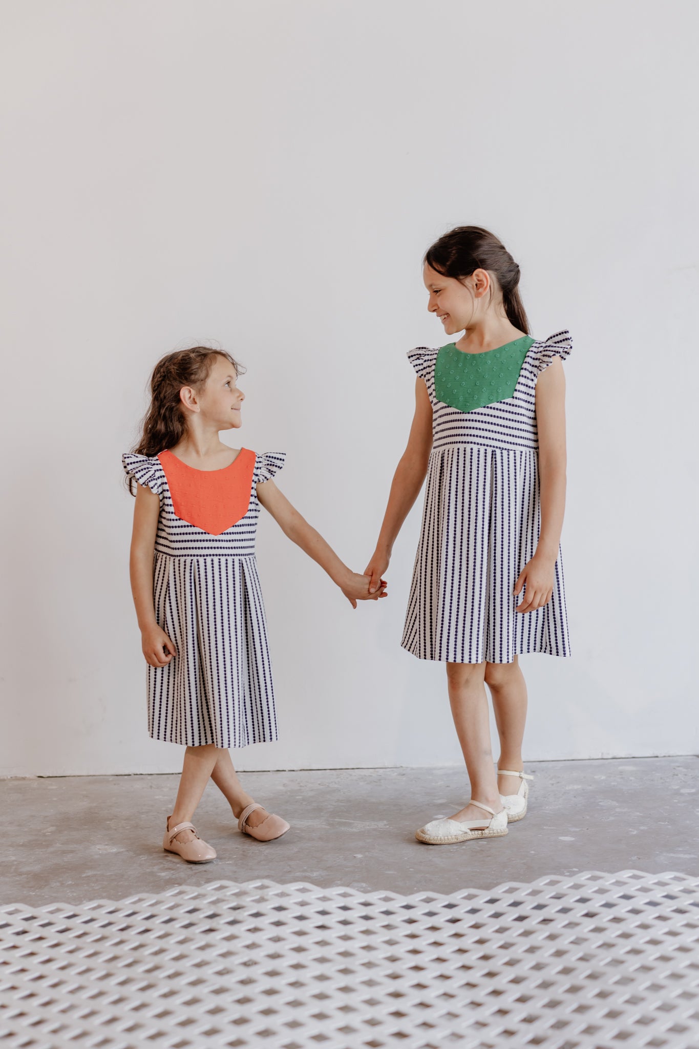 * La niña chica de la foto mide 1,07 mt y modela la talla 6 años (modelo con canesú en rojo anaranjado).